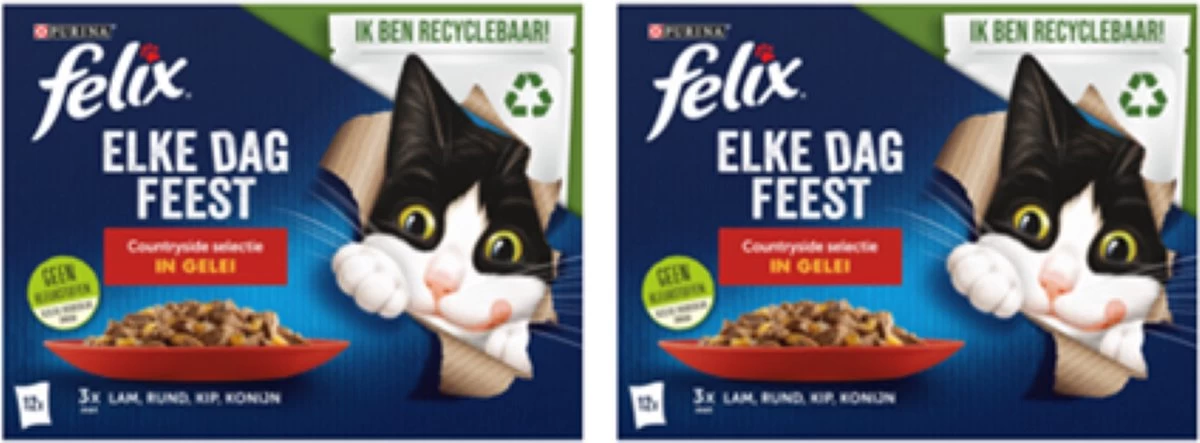 Felix Elke Dag Feest is een assortiment onweerstaanbare maaltijden die er zó lekker uitzien, zó lekker ruiken en zó lekker smaken alsof je het zelf hebt klaargemaakt! Speciaal bereid met zachte stukjes in een overheerlijke gelei. Jouw deugniet zal elke keer weer genieten van een onweerstaanbare maaltijd. Deze heerlijke maaltijden vormen ook een bron van essentiële omega 6-vetzuren met de juiste combinatie van uitgebalanceerde vitaminen die jouw kat energie zullen geven en klaar zullen maken om nog meer kattenkwaad uit te halen. Ze zitten vol gezonde ingrediënten om 100% te voldoen aan de behoeften van jouw kat indien gevoed volgens de voedingsrichtlijnen op de verpakking. Felix – gewoonweg onweerstaanbaar!