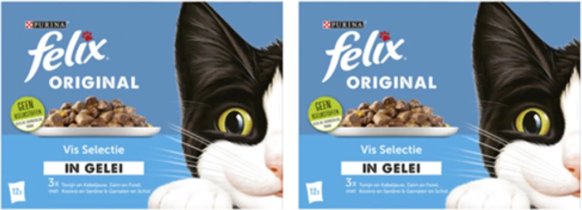 Felix – gewoonweg onweerstaanbaar. Slimme katten weten wat ze willen, vooral als het om eten gaat! Daarom zijn de Felix recepten met kwalitatief hoogwaardige ingrediënten gemaakt en bereid met malse stukjes in een gelei, voor een onweerstaanbare maaltijd voor je kat. Felix is verkrijgbaar in een breed assortiment aan smaakcombinaties om elke dag aan de behoefte voor variatie van jouw kat te voldoen. Dat is nog niet alles! Ze vormen ook een bron van essentiële Omega 6 vetzuren met de juiste combinatie van uitgebalanceerde vitaminen en mineralen die jouw kat klaar zullen maken om nog meer kattenkwaad uit te halen. Ze zitten vol gezonde ingrediënten om 100% te voldoen aan de dagelijkse behoeften van jouw kat indien gevoed volgens de voedingsrichtlijnen op de verpakking. ✓ Geen toegevoegde kunstmatige smaakstoffen ✓ Geen toegevoegde kunstmatige conserveermiddelen ✓ Geen toegevoegde kunstmatige kleurstoffen Felix biedt een ruim assortiment van onweerstaanbare maaltijden aan.. zo kan je elke dag je kat haar favoriete maaltijd geven.