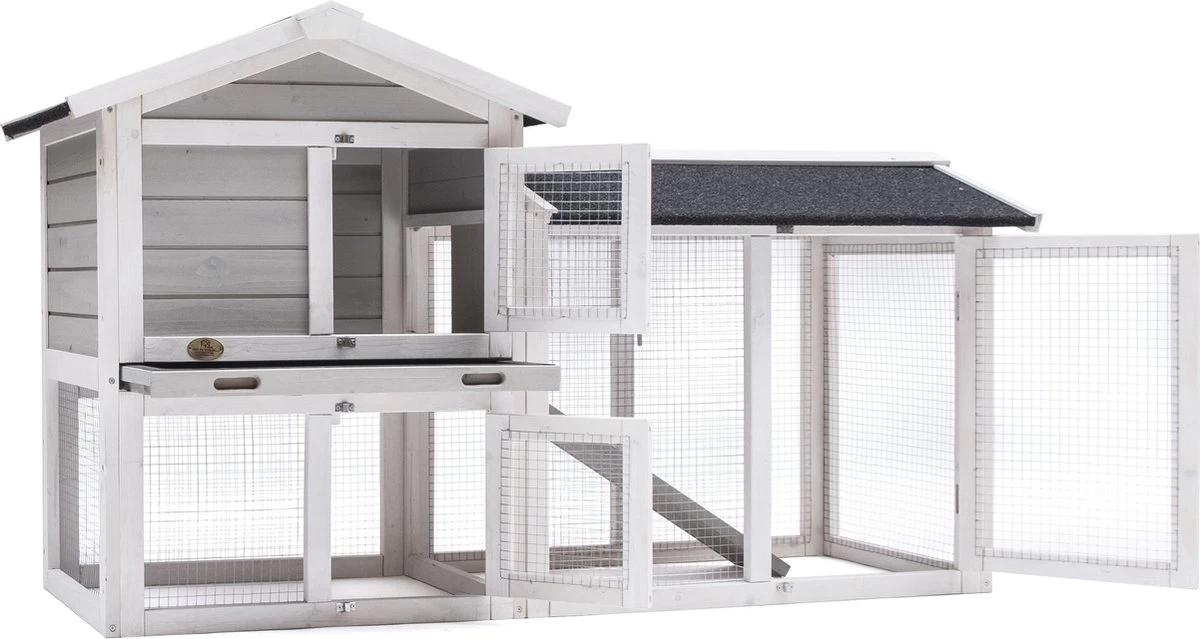 Konijnenhok Avoriaz is een konijnenhok dat beschikt over een ruim binnenverblijf wat voorzien is van een deur en lade. De ren is overdekt met een bitium dak dit zorgt ervoor dat uw konijnen ook bij slecht weer in de ren kunnen verblijven. De ren bestaat uit twee toegangsdeuren zodat u altijd bij uw konijnen kan komen.