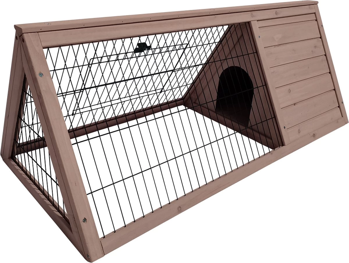 Het Woodland konijnenren Tristan van duvoplus is een leuke buitenverblijfplaats voor konijnen of cavia’s in de vorm van een driehoek. Het houten schuilhok geeft uw huisdier beschutting, rust en een veilig gevoel. De ren heeft 2 deurtjes met schuifslot en kan gemakkelijk verplaatst worden doorheen de tuin. Bovendien is de ren gemakkelijk te monteren en ook uit elkaar te halen om op te bergen.