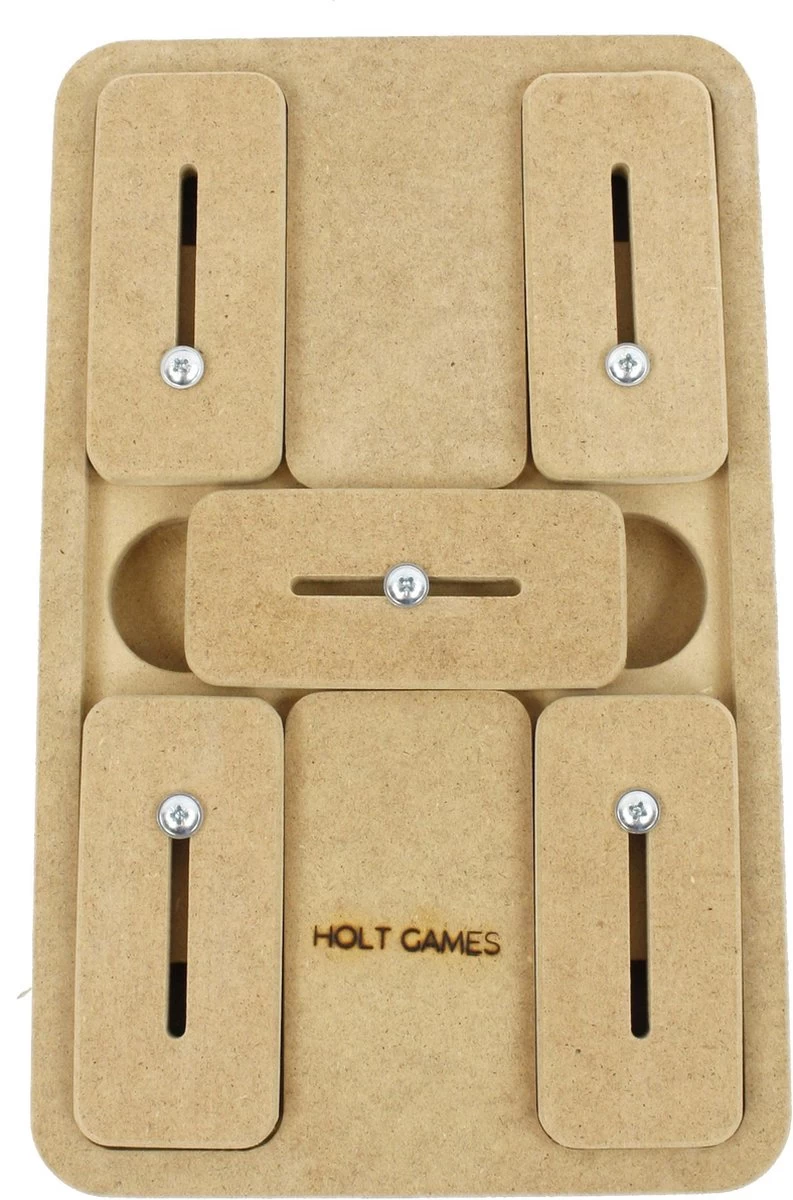 Holt Games Holt Activiteitenspel Hout 30×19,5×3,5 cm Een uitblinker in variatie! De Holt kan je op verschillende manieren beginnen. Hierdoor zijn er ook heel veel manieren om de Holt op te lossen. Kies een startpositie en laat je huisdier met poot of snuit de schuifjes verplaatsen. Nadat de ene helft is ontdekt, moet het middelste schuifje de andere kant op. Je huisdier zal het spel van alle kanten benaderen om de Holt uit te spelen. Oefening baart kunst! Afmetingen: 30×19.5×3.5 cm Materiaal: hout Geschikt voor o.a.: hond, kat, konijn