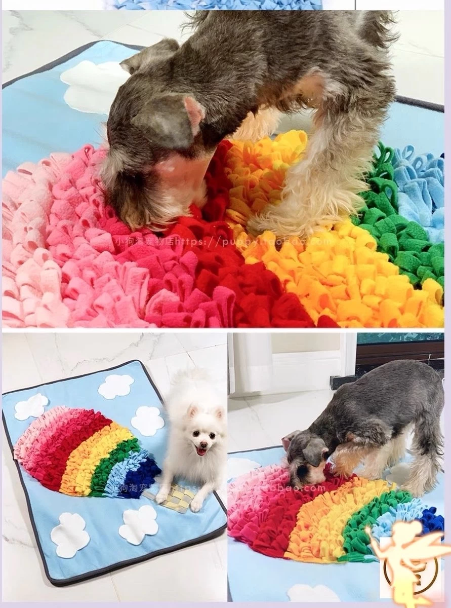 ANTI-SLIP ONTWERP: Dankzij de anti-slip voetjes aan de onderkant van de mat blijft hij stevig op zijn plaats liggen, zodat hij niet door de kamer glijdt terwijl je harige vriend op zoek gaat naar zijn traktaties. Inclusief 1 x Snuffelmat van hoogwaardig, niet-giftig polyester met afmetingen van 80 cm x 80 cm (32 x 23 inch). Geschikt voor kleine en middelgrote honden en katten.