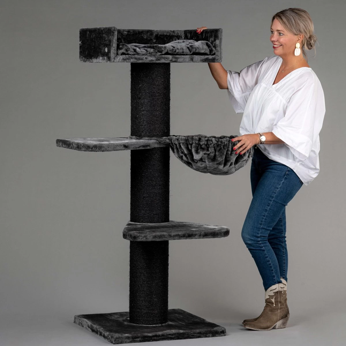 Krabpaal voor grote katten Royalty Plus Blackline Donkergrijs Antraciet is met ca 35KG een zeer stevige RHRQuality krabpaal met extra dikke 20cm diameter sisalpalen met alles wat een kat zich kan wensen.