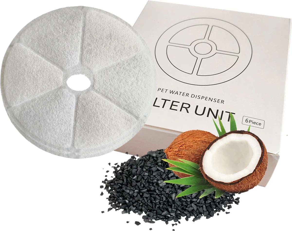 Filter set met 6 reinigingsfilters voor de Skipoo drinkfontein goed voor minimaal 3 tot 6 maanden. De filter maakt gebruik van koper-zinkwaterfiltratie, ionenwisselaar, koolstoffilter en fijn gaas. Op deze manier heeft jouw huisdier altijd gezond, schoon en vers water beschikbaar.