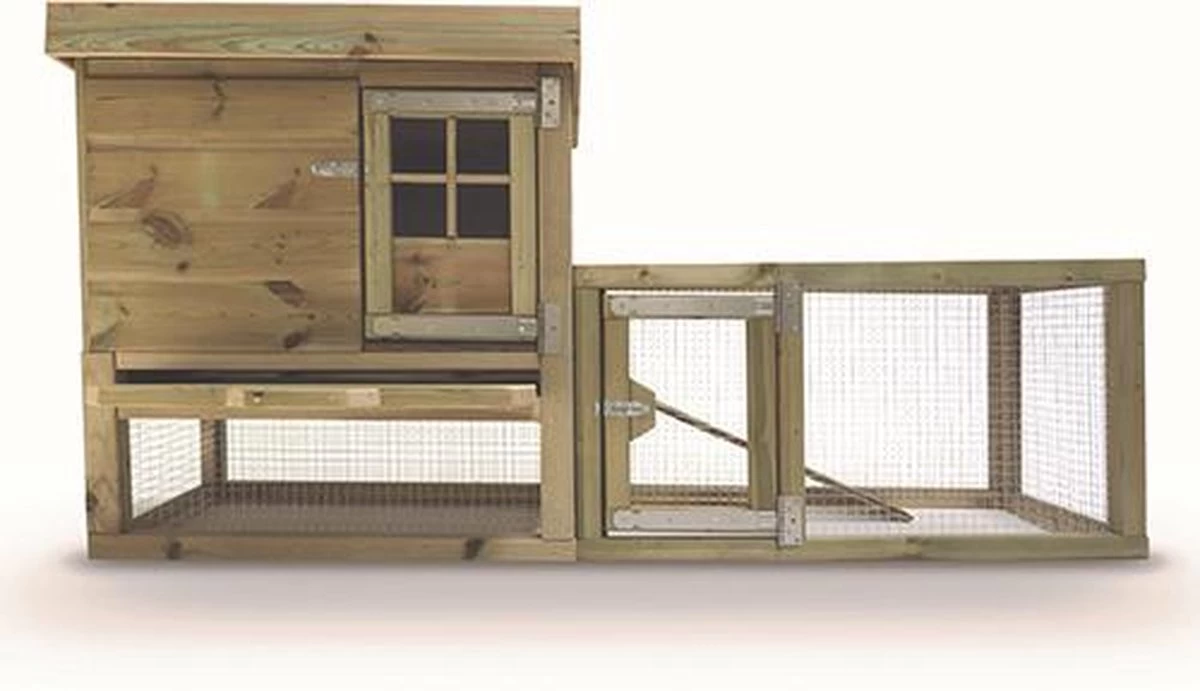 Dit verblijf wordt geproduceerd door gespecialiseerde vakmannen van Voldux die zorgen voor een perfect resultaat. Het verblijf wordt volledig gemaakt van geΓ―mpregneerd hout. Dit maakt het hok onderhoudsvrij en zeer geschikt voor buiten.